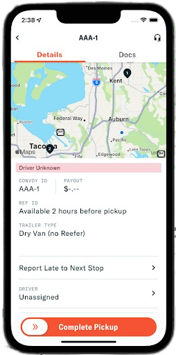 To ensure loads are delivered timely, accurately, and securely, the Convoy app will not display certain details about a shipment until four (4) hours before the scheduled pickup.